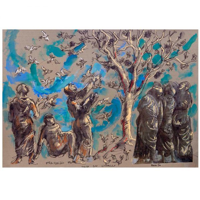 Serie San Francesco - 50 x 70 cm - Stampe d'arte in carta pregiata Questa stampa d'arte riproduce uno dei bozzetti usati da Dario Fo per il suo spettacolo: Lu Santo Jullare Francesco